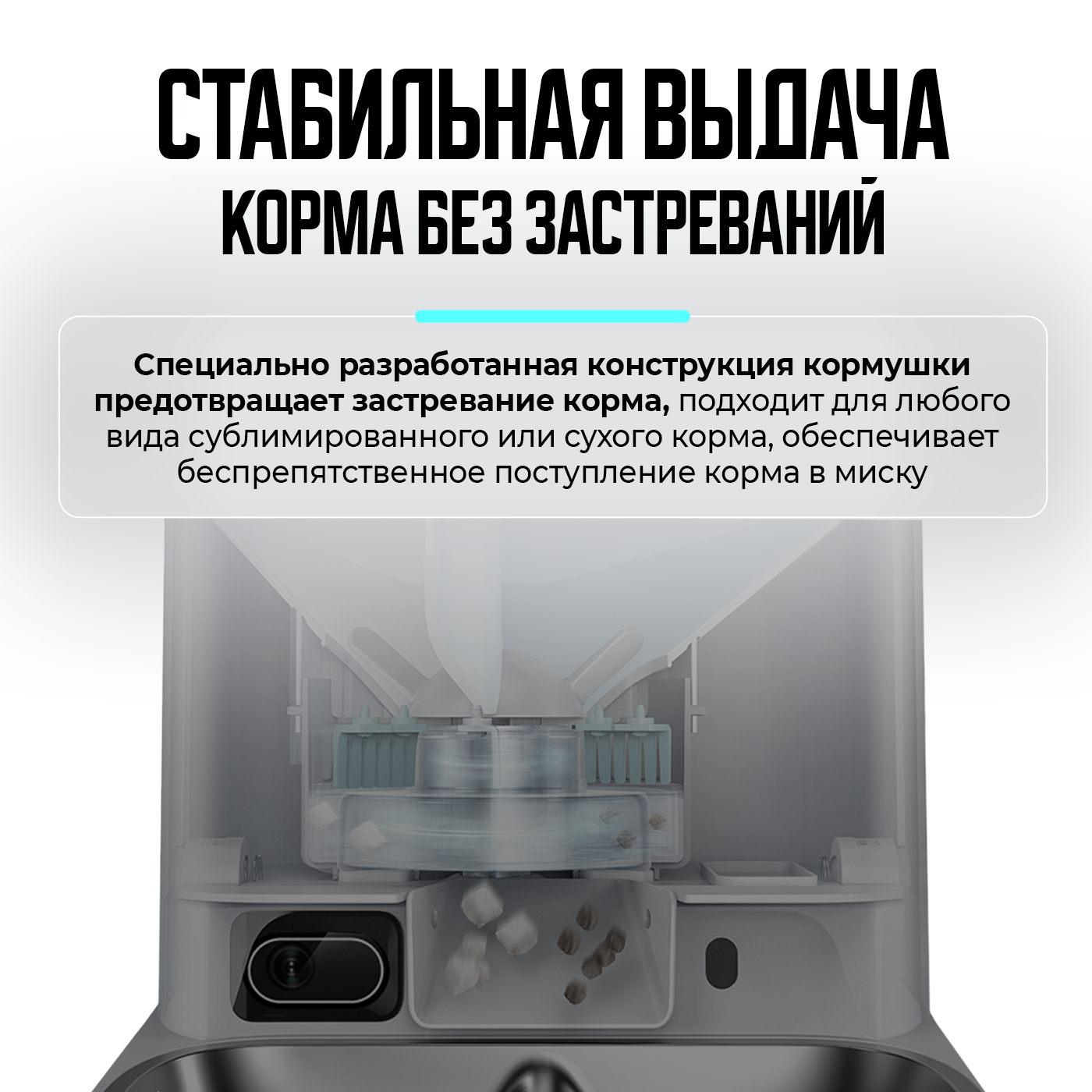 Кормушка отличная, брала для двух Котов. Работает как часы👍🏻. Управляется с телефона прекрасно. Из отпуска удобно контролировать котиков, кто ест, когда и сколько. Ну и самый лучший бонус увидеть котиков через камеру и поговорить с ними!Благодарю за отличный товар! Используем уже 4 месяца.