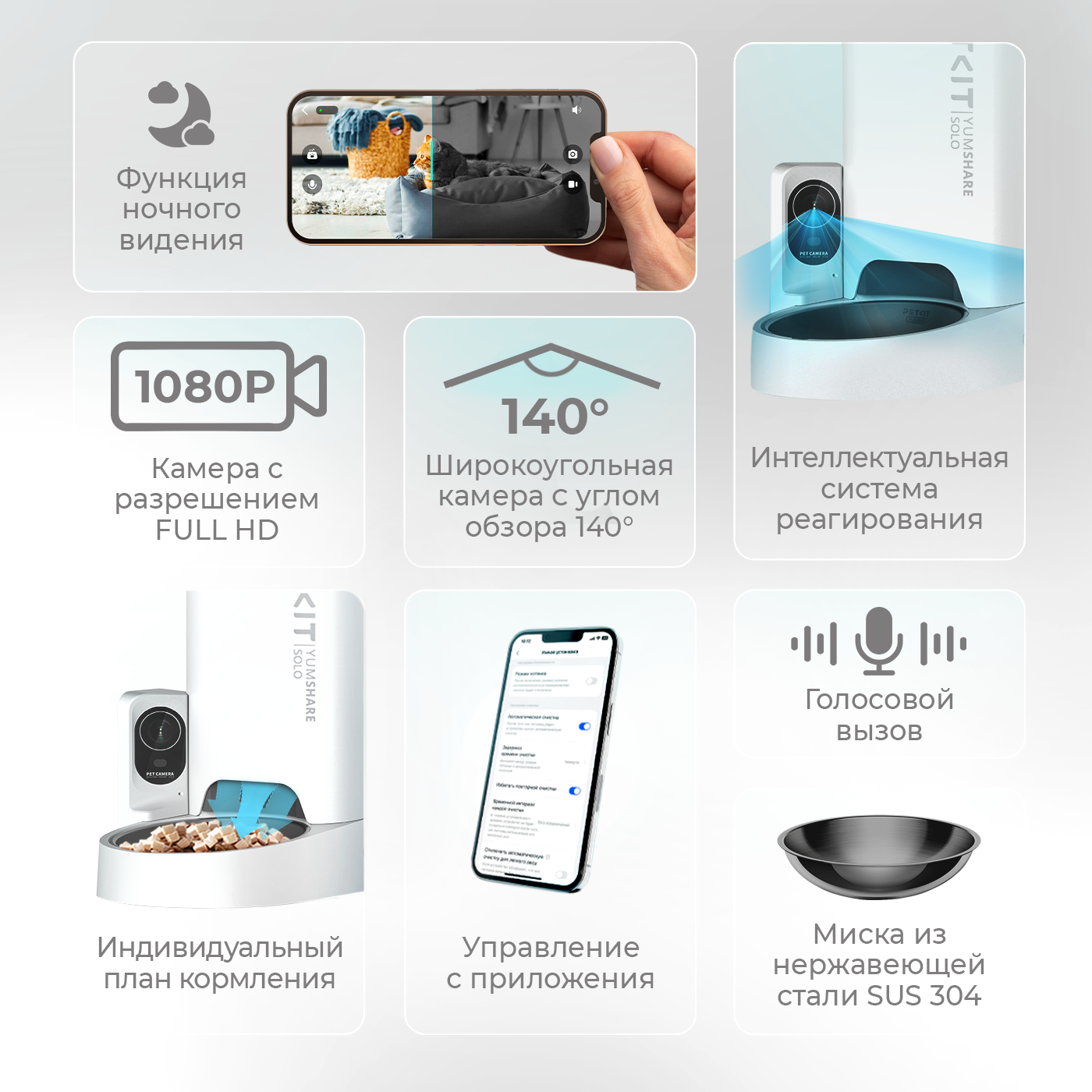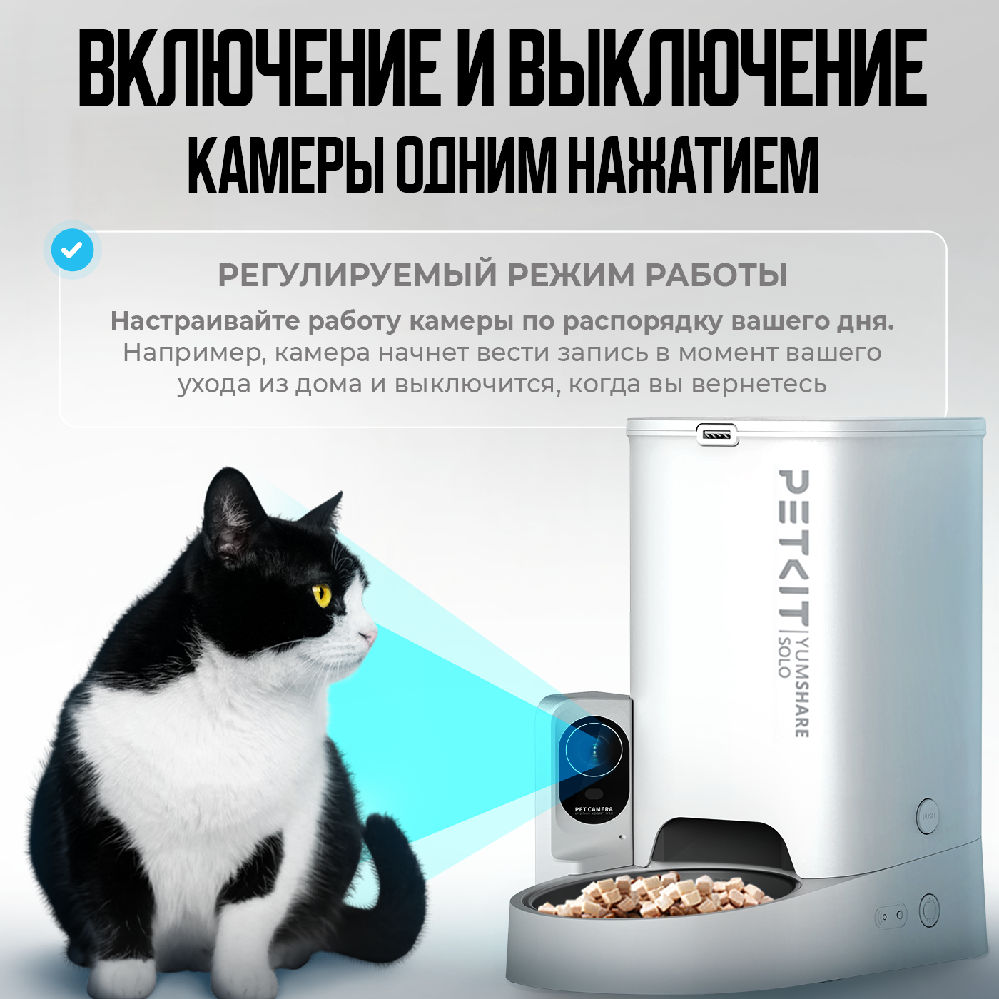 Домашний питомец в течение всего дня остается под вашим наблюдением. С помощью умной камеры вы всегда сможете контролировать свежесть корма, а также в любой момент наблюдать за своим питомцем